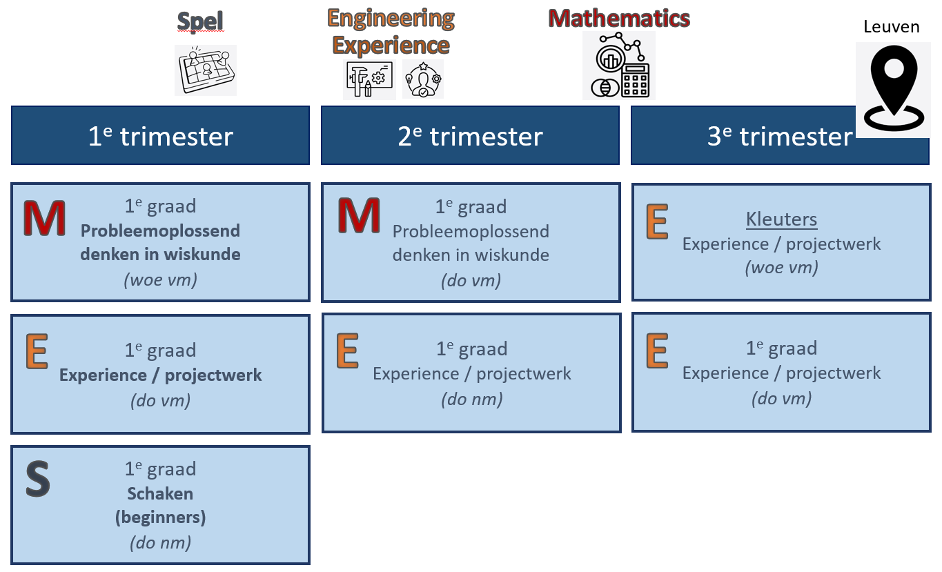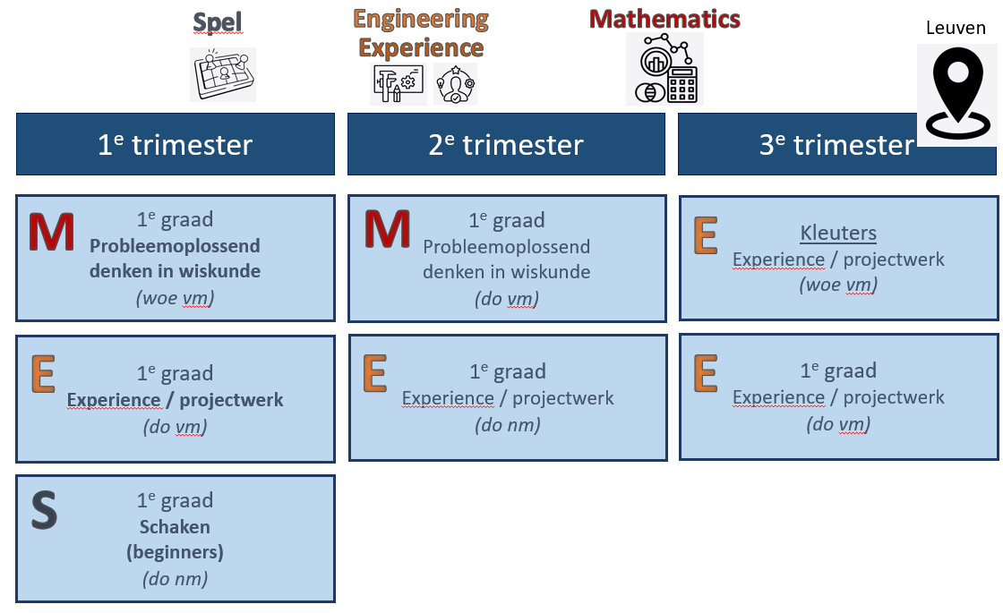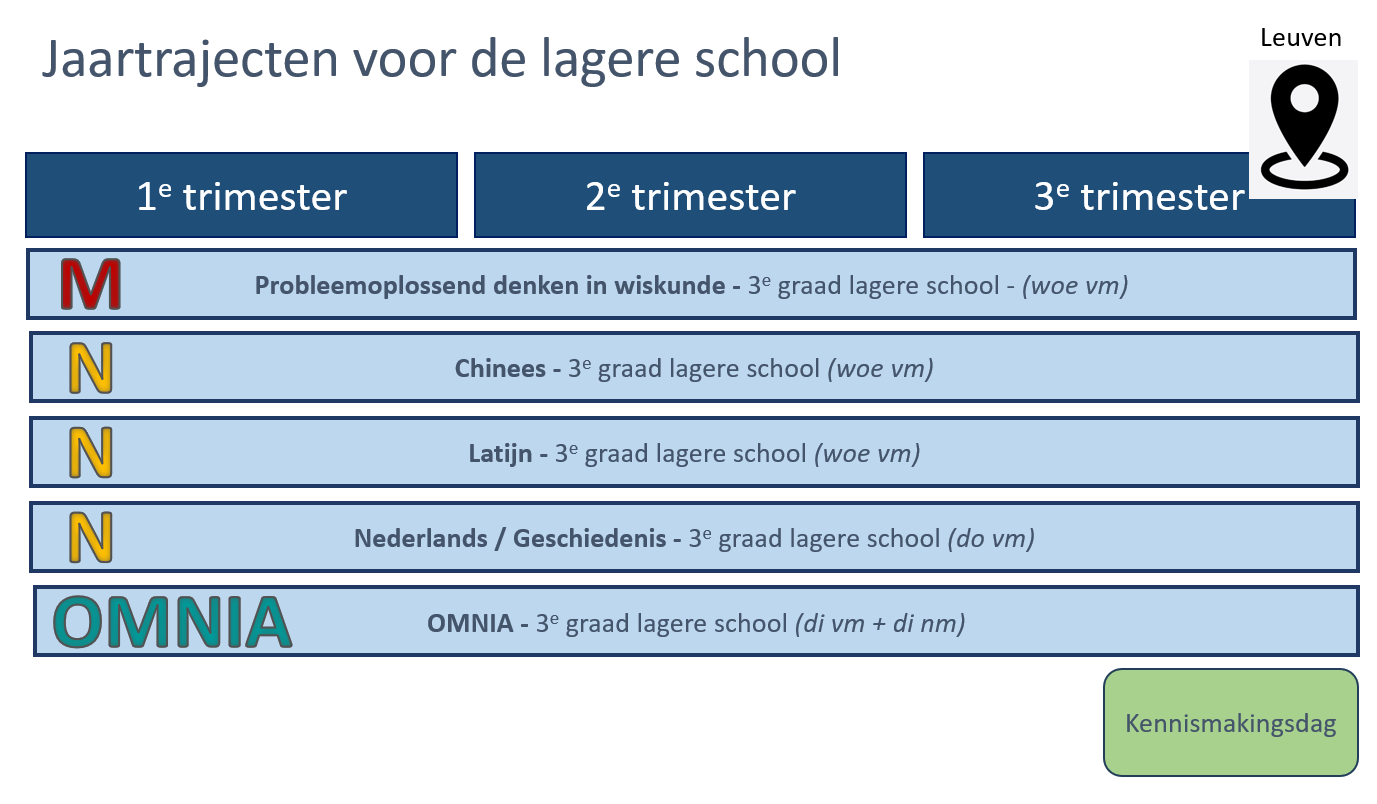 Hieronder vind je een overzicht van de planning van de trimestertrajecten voor de lagere school in Leuven.
