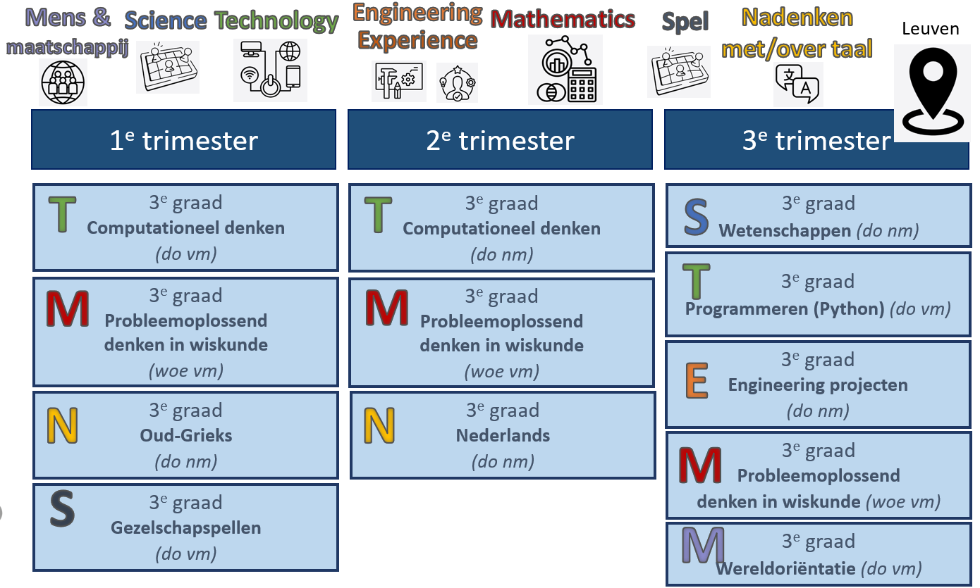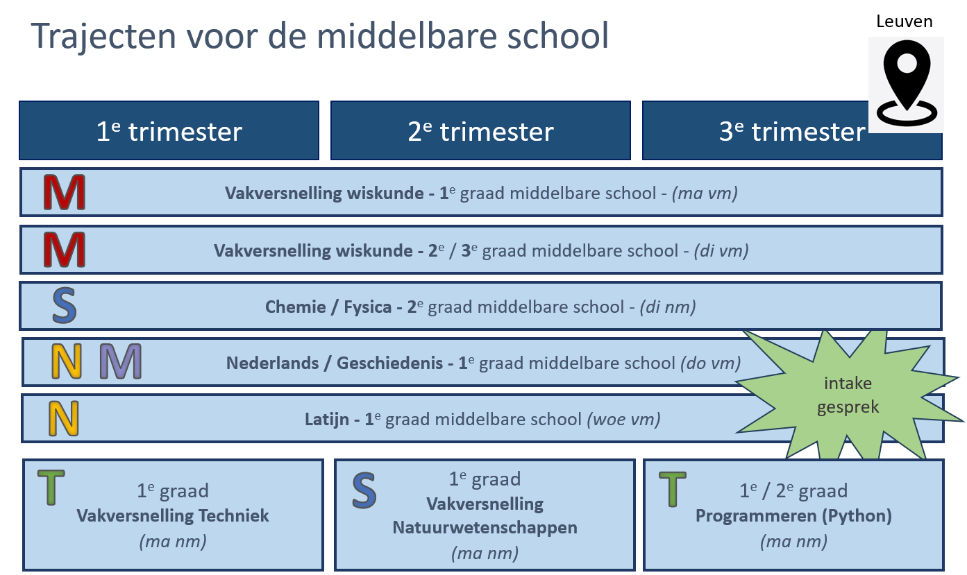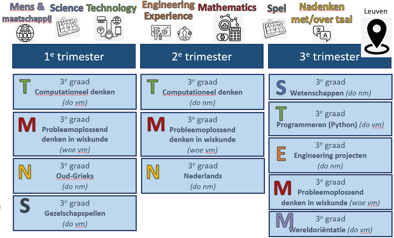 Hieronder vind je een overzicht van de planning van de trimestertrajecten voor de lagere school in Leuven.